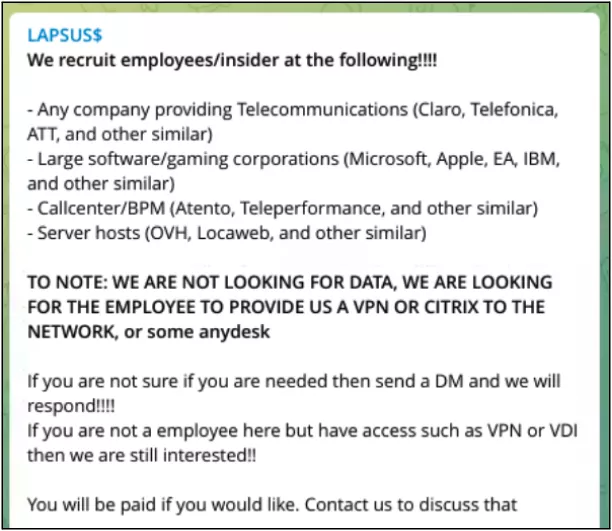 Lapsus$ et son activité criminelle sur Internet.